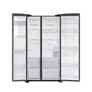 Descubra a nova Samsung Refrigerador Side by Side com 2 Portas e Dispensador de Água e Gelo. Com uma capacidade impressionante de 617 litros, este eletrodoméstico foi desenhado para oferecer eficiência e estilo à sua cozinha, assegurando que os seus alimentos permanecem frescos e facilmente acessíveis.